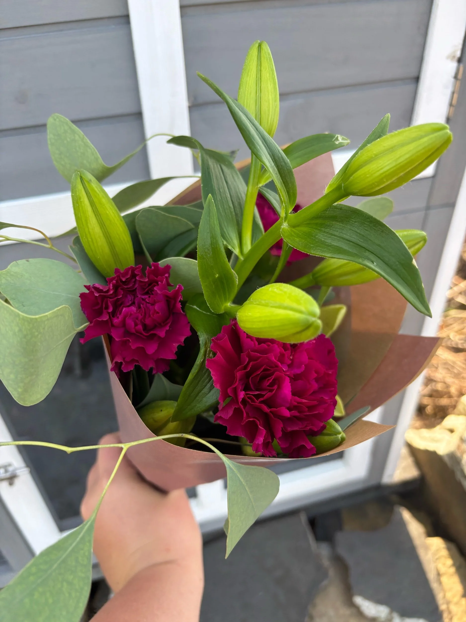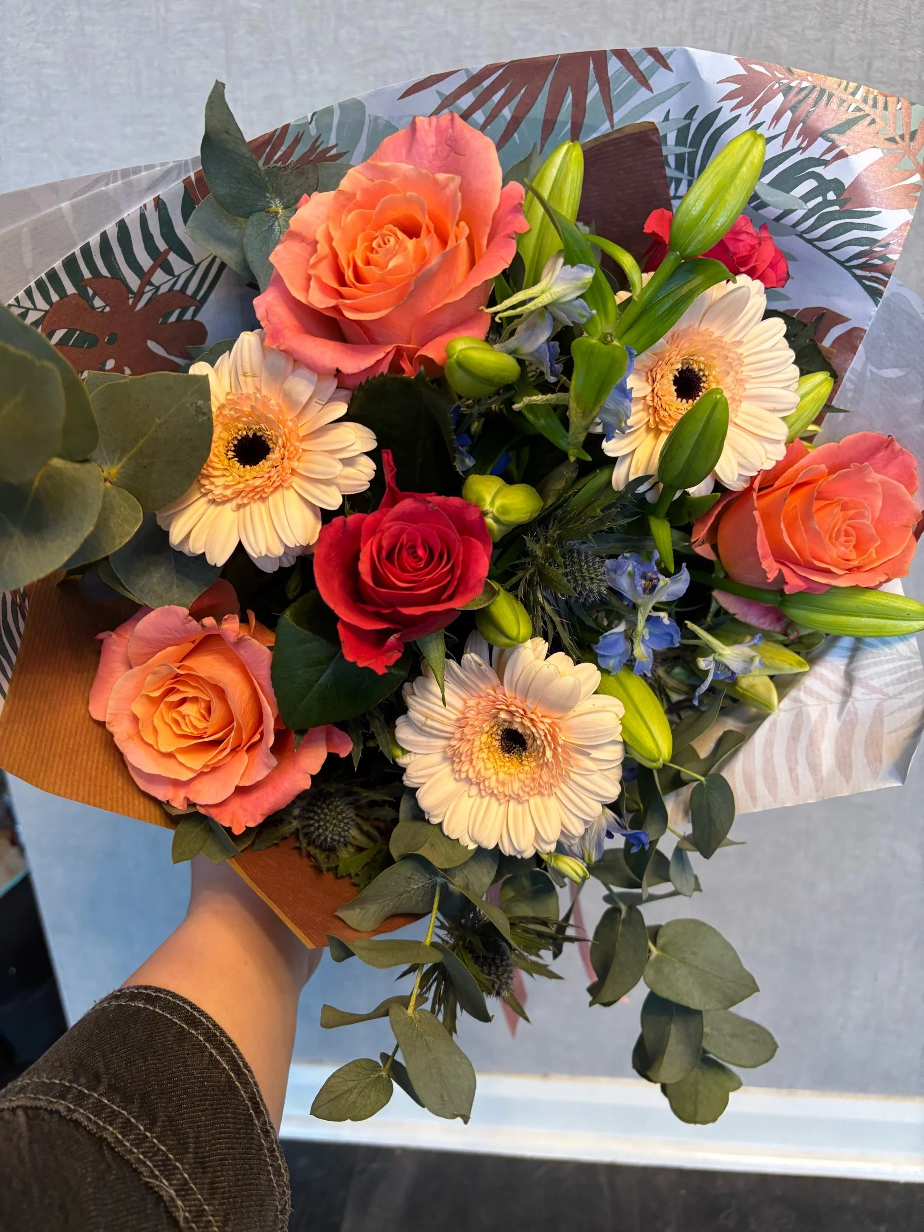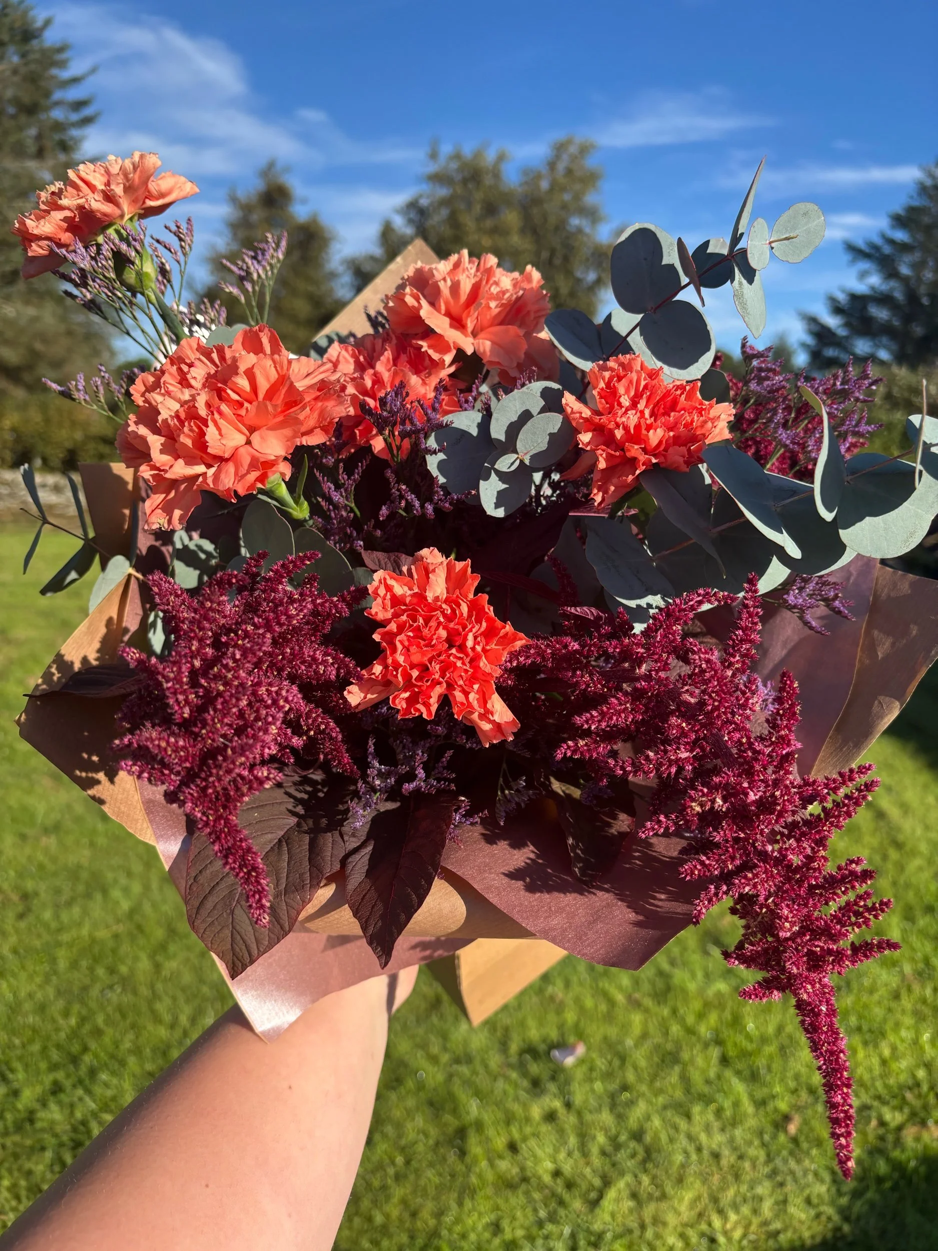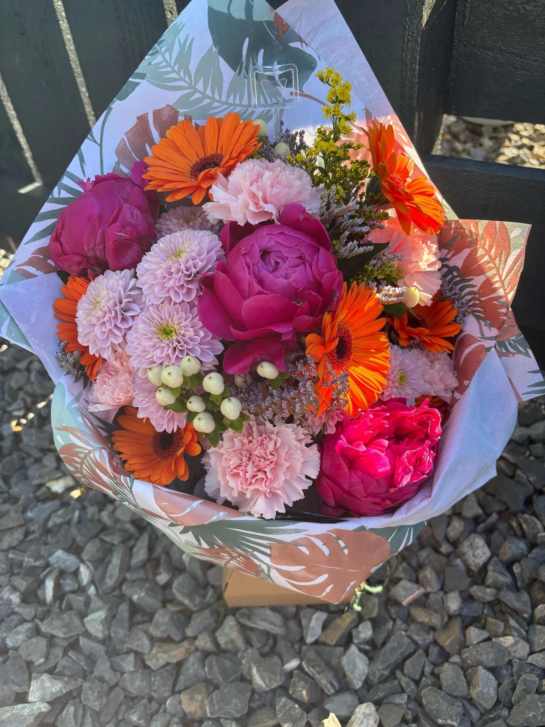 Categories: Select a Category Arrangement Bouquet Arrangement | Bouquet | Blooms & Bon Bons Workshop £93.60 Gift Certificate from £10.00 Christmas Wreath Workshop £55.00 Florist Choice Bouquet - Admiration £75.00 Florist Choice Bouquet - Occasion £55.00 Florist Choice Bouquet - Expression £40.00 Florist Choice Bouquet - Moment £18.00
